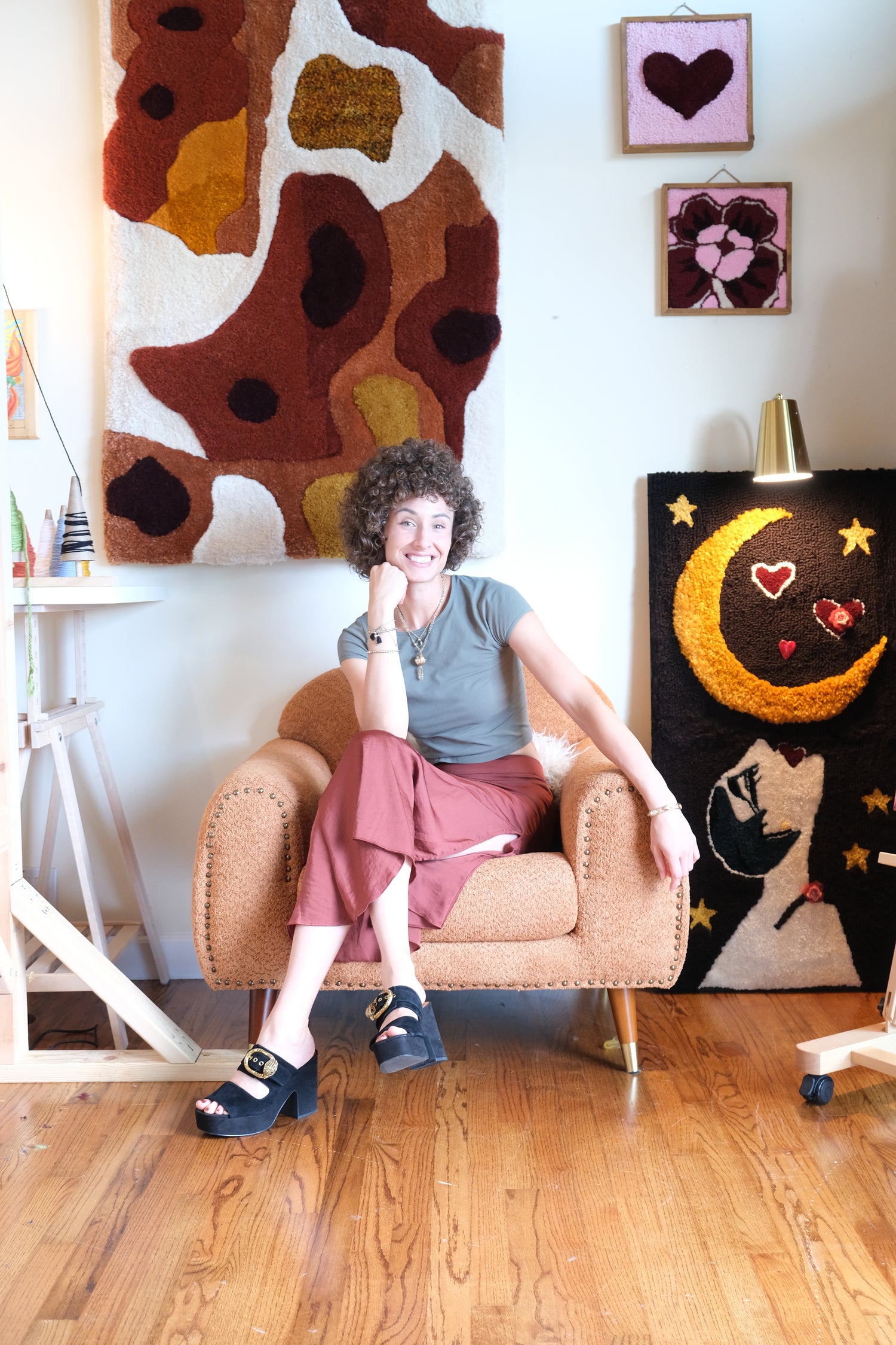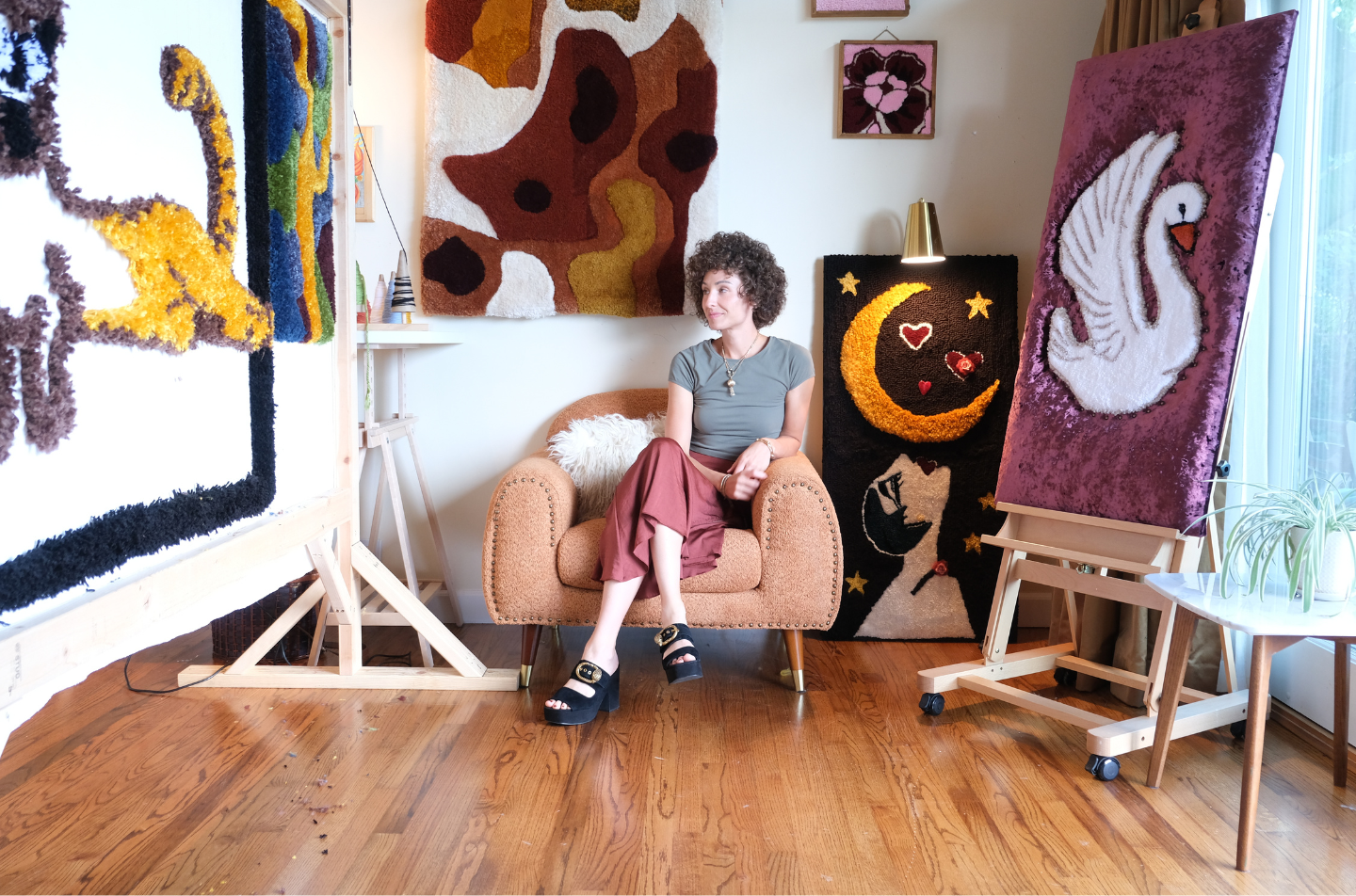 While transforming spaces is her main passion, she is also an artist with expertise in tactile wall sculptures made with 100% wool fibers that bring warmth and personality to any space. Her commitment to quality and attention to detail ensures that each piece is a one-of-a-kind treasure, inviting you to experience the joy of handmade art. In addition to her tufting art, she offers some exclusive watercolor and acrylic art collections.