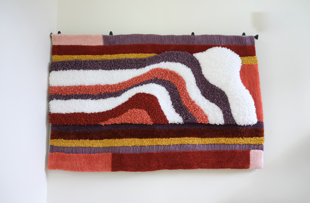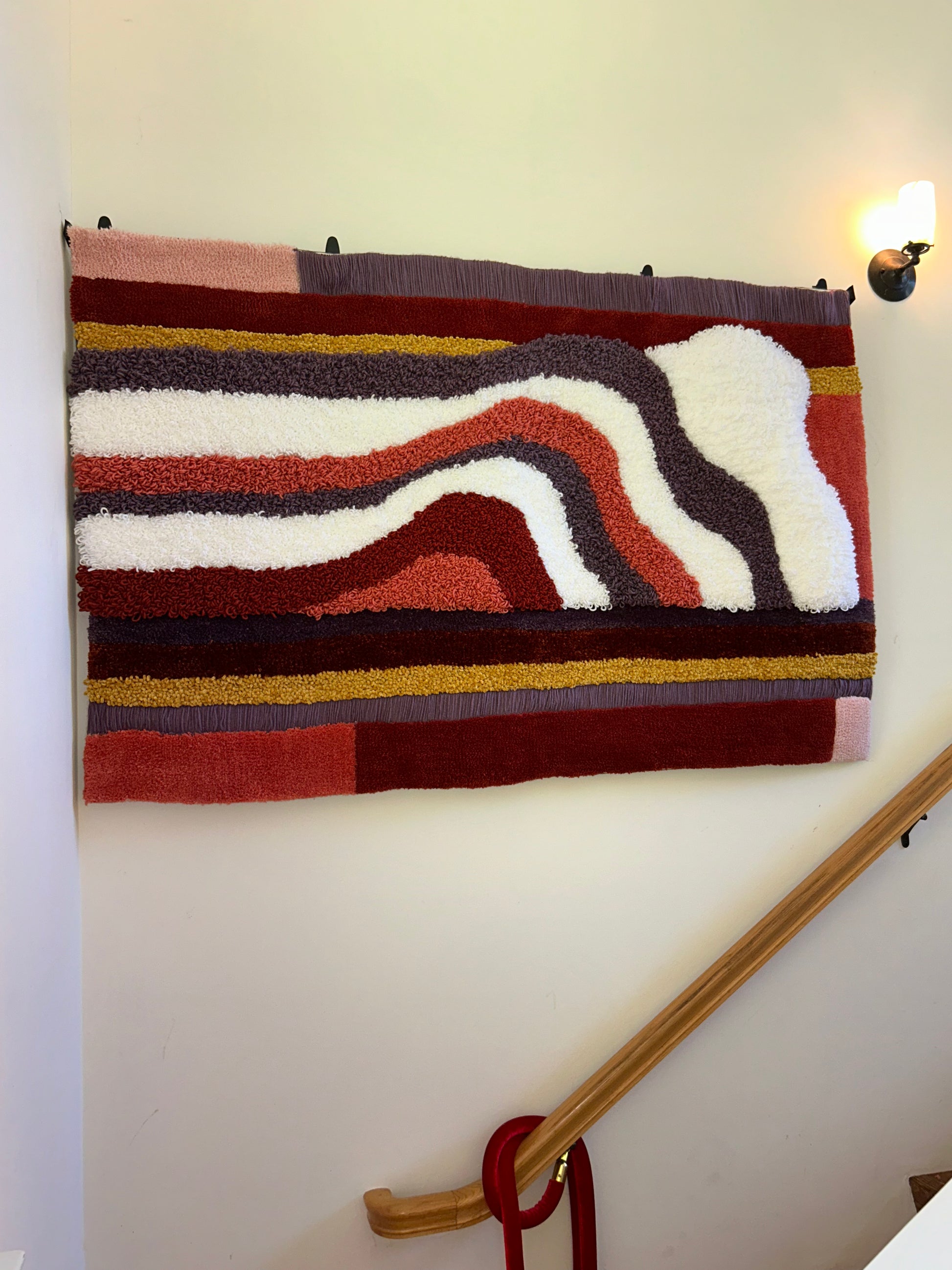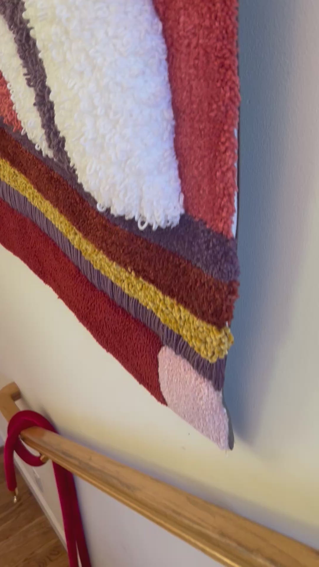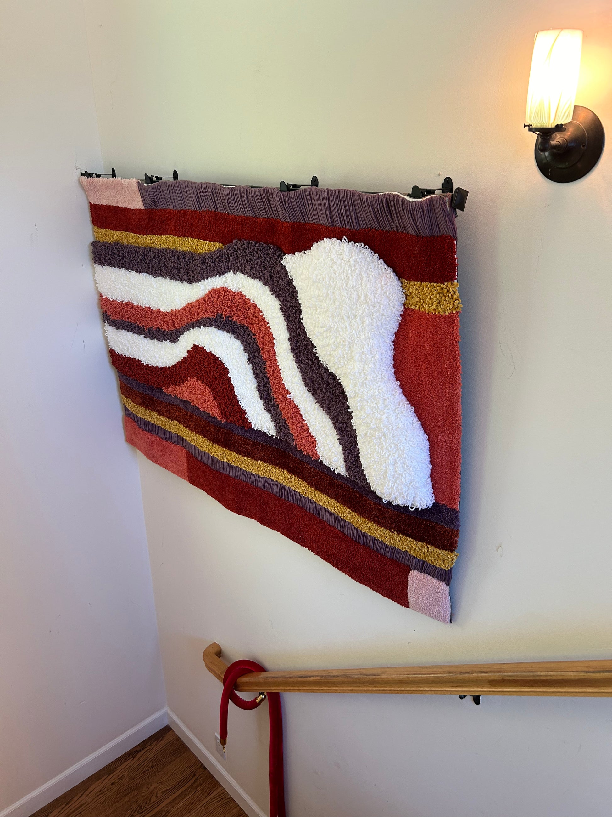 Tufted art hanging on metal rod. Original work - only 1 in stock.